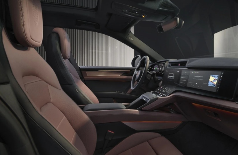 Khoang nội thất Cayenne Electric được tạo hình như một không gian trải nghiệm số hóa. Xe sở hữu bảng đồng hồ OLED 14,25 inch phía trước, màn hình trung tâm kéo dài xuống khu vực tựa tay và tùy chọn màn hình phụ 14,9 inch cho hành khách ghế trước.