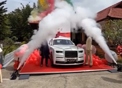 Đoạn video cho thấy, chiếc Phantom VIII màu trắng ngọc trai được vận chuyển đến bằng xe chuyên dụng, phủ tấm vải nhung sang trọng. Ông CJ Roy xuất hiện trong chiếc Mercedes-Maybach màu trắng, bước xuống giữa dàn nhân viên Big Boy Toyz, rồi tự tay kéo tấm phủ, để lộ siêu phẩm mới giữa tràng pháo tay và tiếng vỗ tay chúc mừng.