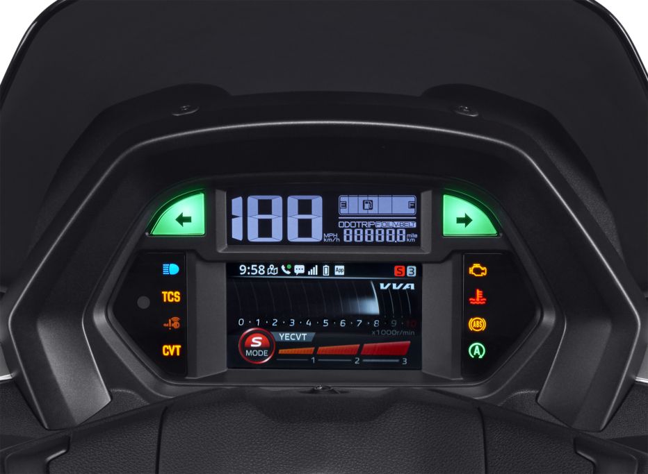 Ở khía cạnh công nghệ và an toàn, Yamaha NMAX thế hệ mới được trang bị cụm đồng hồ kết hợp giữa màn hình TFT màu 4,2 inch và màn hình LCD. Trên phiên bản Tech Max, màn hình này hỗ trợ hiển thị bản đồ dẫn đường thông qua nền tảng Garmin StreetCross, mang lại lợi thế rõ rệt cho người dùng thường xuyên di chuyển trong đô thị hoặc trên những cung đường lạ. Các trang bị an toàn tiêu chuẩn gồm phanh đĩa trước – sau tích hợp ABS hai kênh và hệ thống kiểm soát lực kéo TCS, góp phần nâng cao độ an toàn khi vận hành trên mặt đường trơn trượt hoặc trong điều kiện thời tiết không thuận lợi.
