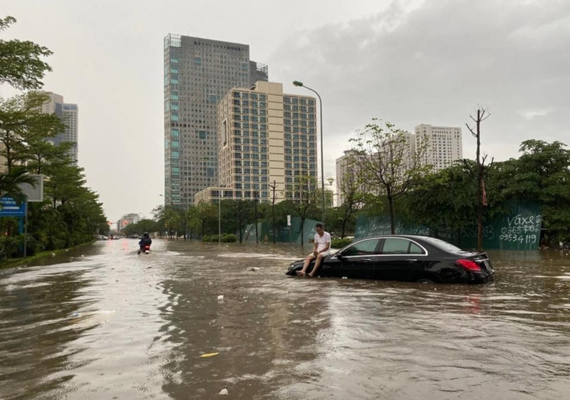 Trận mưa lớn kéo dài hơn 3 tiếng diễn ra vào chiều 29/5 đã khiến nhiều tuyến đường ở Hà Nội bị ngập sâu dẫn đến việc nhiều ô tô, xe máy bị chết máy giữa đường, xe nằm trong hầm gửi xe cũng hỏng hóc vì hầm cũng bị ngập nước.