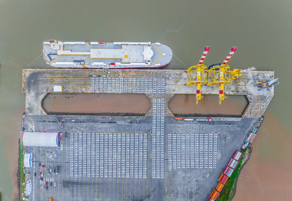Những chiếc xe ô tô điện VF 8 được chuyển lên tàu thuê riêng Silver Queen của Panama