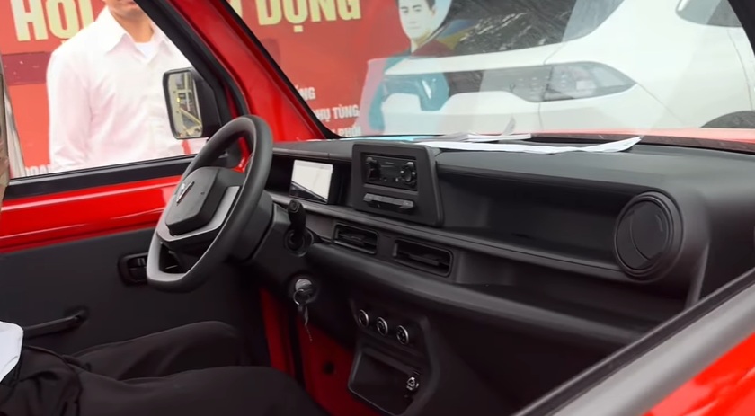 VinFast EC Van được trang bị vô-lăng hai chấu và cần số dạng gạt phía sau tay lái được chia sẻ từ mẫu VinFast VF 3, cho thấy hai dòng xe có thể chung nền tảng phát triển và linh kiện nội thất.
