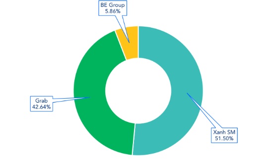 Theo đó, đây là quý thứ 5 liên tiếp Xanh SM giữ vững vị trí dẫn đầu thị trường gọi xe công nghệ, với 51,5% thị phần, vượt Grab (42,64%) và be (5,86%).