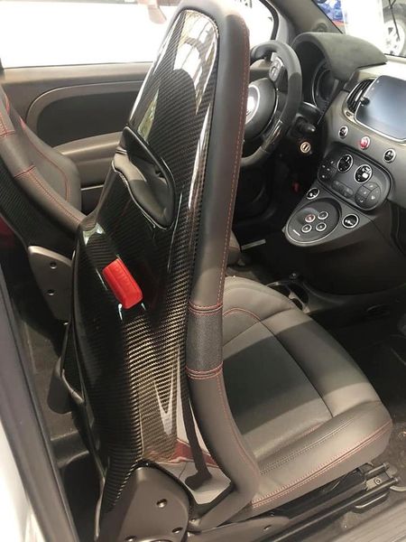 Bộ ghế ngồi của Abarth 595 có khung ghế từ sợi carbon và bọc da cao cấp