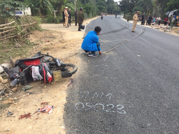 Cú đâm mạnh khiến hai vợ chồng anh Minh bị kéo lê hơn 10m. Hậu quả làm anh Minh tử vong tại chỗ còn người vợ nguy kịch được người dân đưa đi cấp cứu.