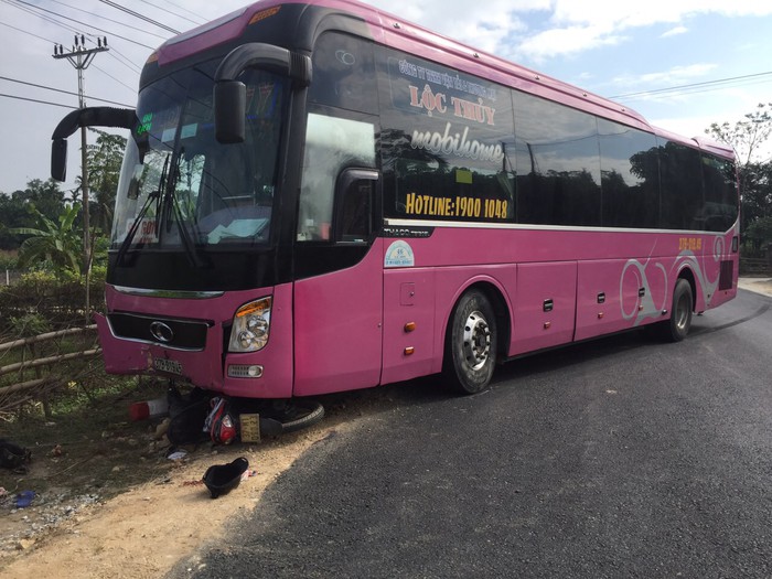 Tại hiện trường, chiếc xe máy bị hư hỏng nặng, nằm lọt dưới gầm xe khách. Theo quan sát, xe khách lấn làn sang phần đường đối diện.