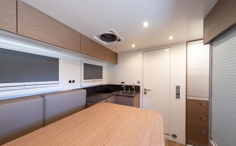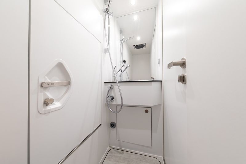 Các tiện nghi trong phòng vệ sinh bao gồm một nhà vệ sinh bằng compost hoặc cassette và hai vòi sen với bình nước nóng được đun bởi năng lượng lấy từ động cơ dầu diesel Truma Combi 6kW dung tích 10L. Trong khi đó, hệ thống lọc nước chạy trên một bể chứa 300 lít và có khả năng loại bỏ các hạt có kích thước nhỏ đến 5 micron.