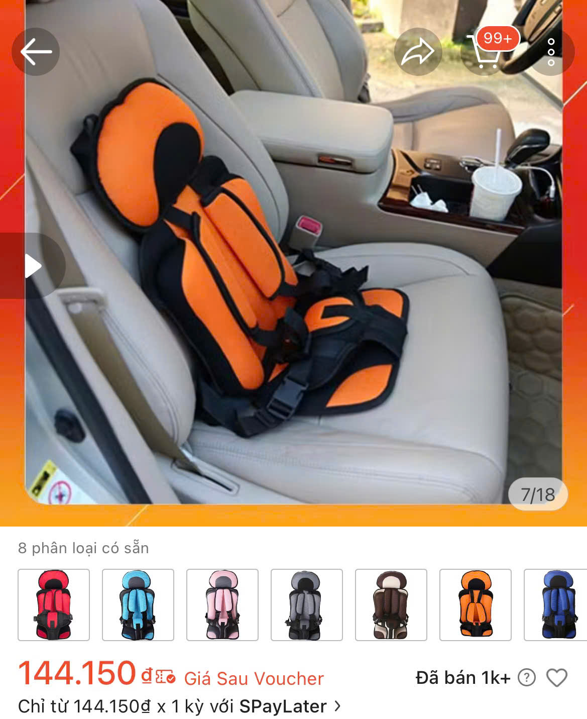 Hiện tượng tương tự dường như đang lặp lại với ghế trẻ em. Chỉ cần vài thao tác tìm kiếm trên các sàn thương mại điện tử, người dùng có thể thấy hàng loạt mẫu ghế trẻ em giá từ 90.000 đến 150.000 đồng. Mức giá này rẻ hơn rất nhiều so với ghế đạt chuẩn an toàn thường dao động từ một đến vài triệu đồng. Với chi phí rẻ, thiết kế đơn giản và lời quảng cáo hấp dẫn, các sản phẩm này dễ dàng thu hút sự chú ý của phụ huynh, đặc biệt khi nhu cầu tăng mạnh để tránh mức phạt lên đến 1 triệu đồng.