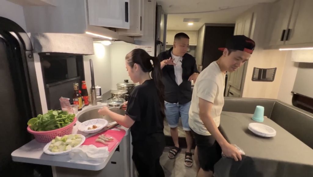 Dù nhìn đầy đủ đồ đạc, nhiều tiện ích là thế, nhưng theo youtuber này chia sẻ, xe di động cũng có một số bất cập, ví dụ như vấn đề nước sạch. Bởi nước được tích trữ trên xe sẽ được dùng cho việc tắm rửa và ăn uống, nếu không tiết kiệm sẽ khó có thể đủ cho 4 người dùng.
