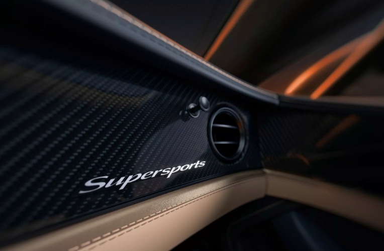 Phía sau ghế là khoang chứa đồ bọc da kết hợp ốp sợi carbon. Nhiều chi tiết trong nội thất được hoàn thiện bằng carbon hoặc nhôm tùy chọn. Logo Supersports xuất hiện trên bệ bước, trong khi bảng số thứ tự của từng chiếc xe được đặt ở khu vực trung tâm. Bộ phận Mulliner tiếp tục cung cấp hàng trăm tùy chọn cá nhân hóa để mỗi khách hàng có thể tạo nên một chiếc xe mang dấu ấn riêng.