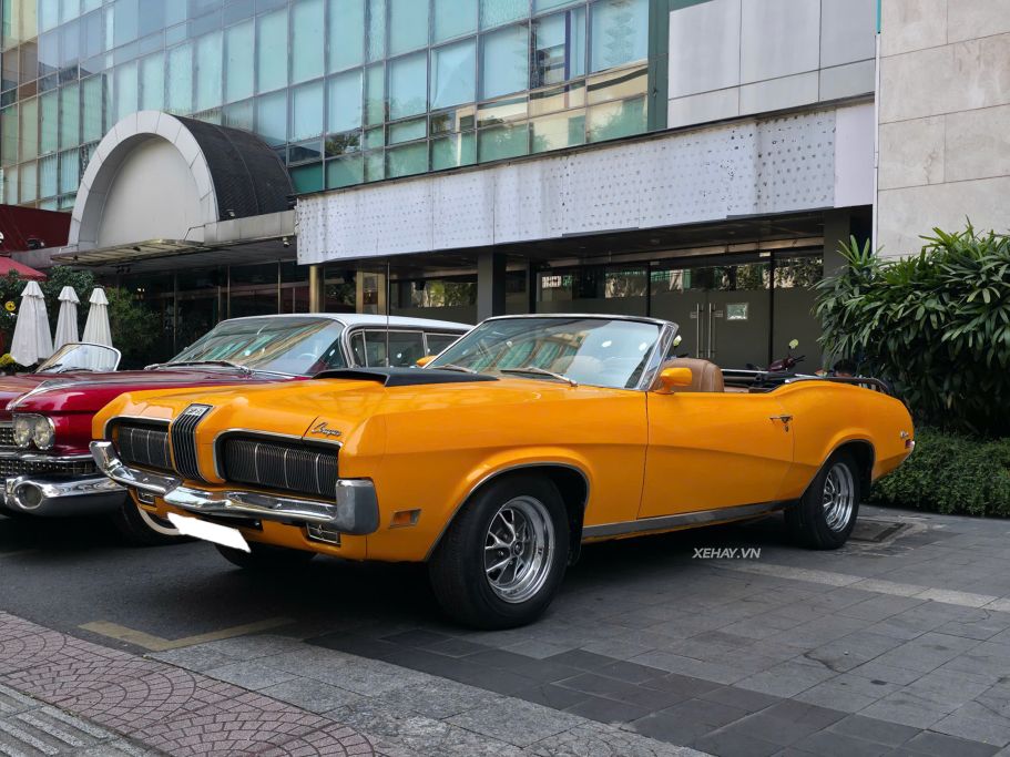 Tuy nhiên, chiếm trọn "spotlight" lại là chiếc Mercury Cougar Convertible đời 1970. Dù đã có tuổi đời lên đến gần 60 năm, "báo hoang" nước Mỹ vẫn giữ vững phong độ với ngoại thất màu vàng cam rực rỡ phối cùng mui mềm đen tương phản.