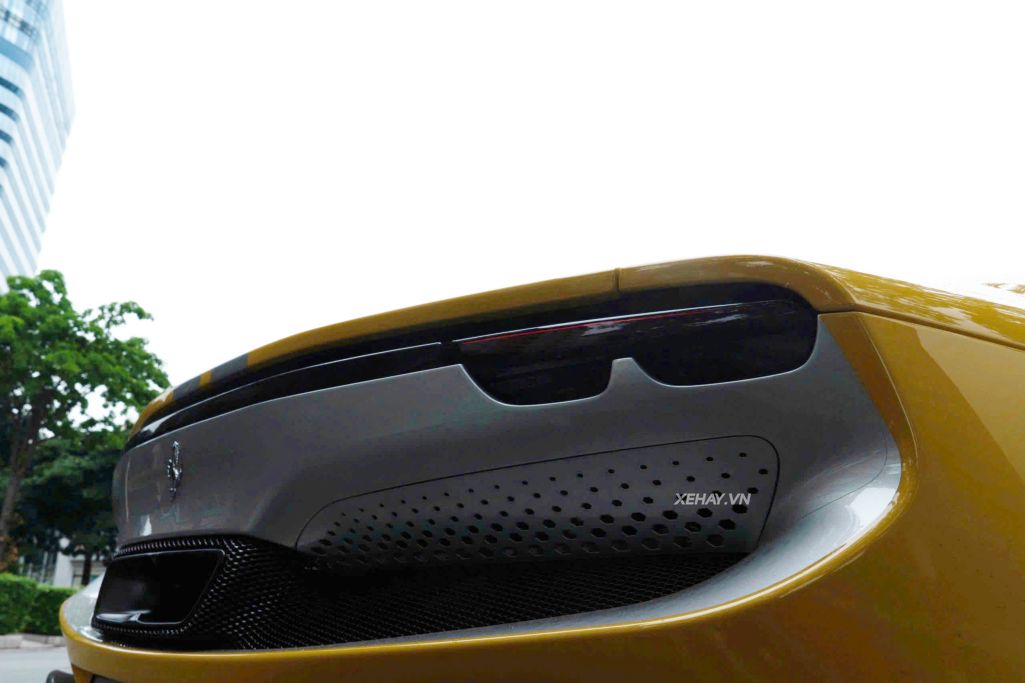 Gói Assetto Fiorano được xem là “linh hồn” của chiếc xe này, mang đến loạt nâng cấp tập trung vào hiệu năng và trọng lượng. Điểm nhấn gồm hệ thống giảm xóc Multimatic lấy cảm hứng từ xe đua GT, các chi tiết sợi carbon chuyên biệt như cản trước, cửa xe, vách ngăn sau lưng ghế, kính Lexan và cánh gió khí động học phía sau. Theo Ferrari, riêng líp cản trước bằng carbon giúp tăng 10 kg lực ép khí động học ở đầu xe khi vận hành tốc độ cao.