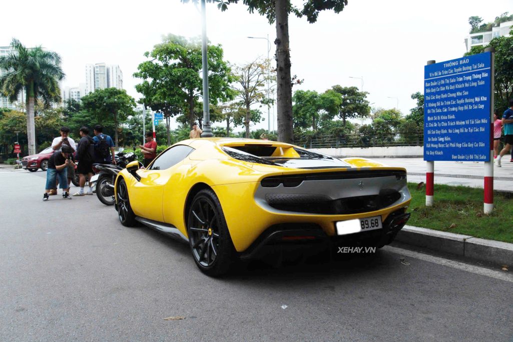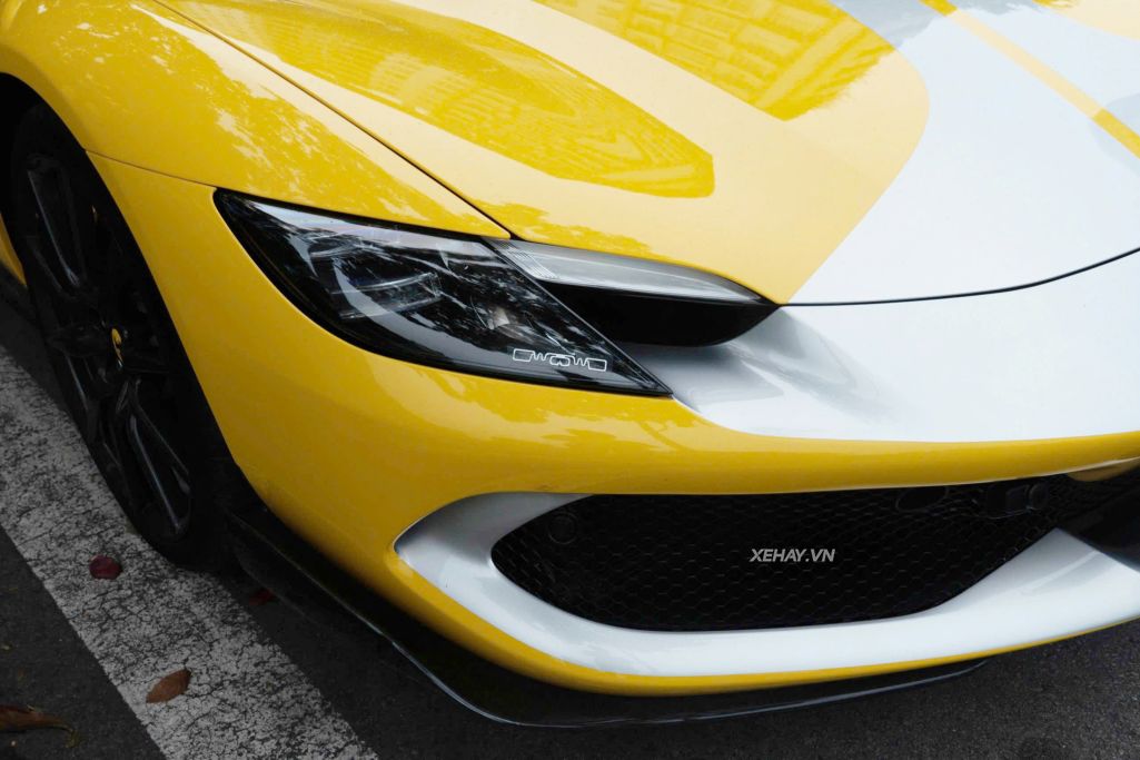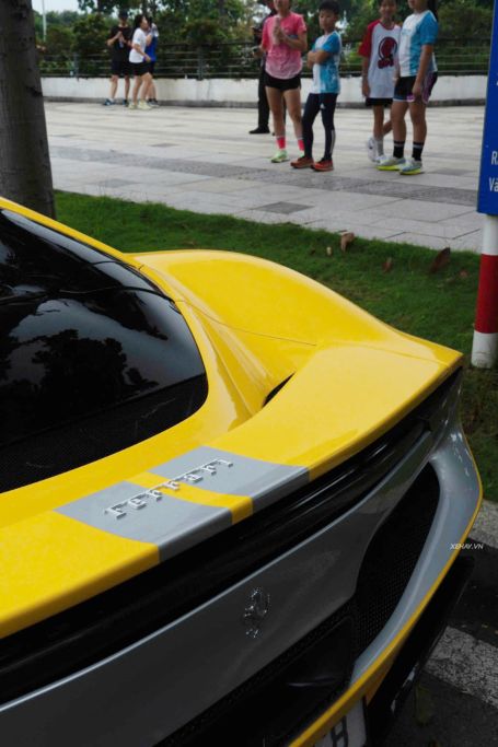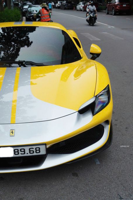 Chiếc siêu xe hybrid mui trần này nổi bật với màu sơn Giallo Modena đặc trưng của Ferrari, kết hợp cùng dải sơn bạc Argento Nurburgring lấy cảm hứng từ những mẫu xe đua danh tiếng trong lịch sử thương hiệu. Đây không chỉ là sự phối màu mang tính biểu tượng, mà còn tôn lên vẻ mạnh mẽ, thể thao cho tổng thể ngoại hình.