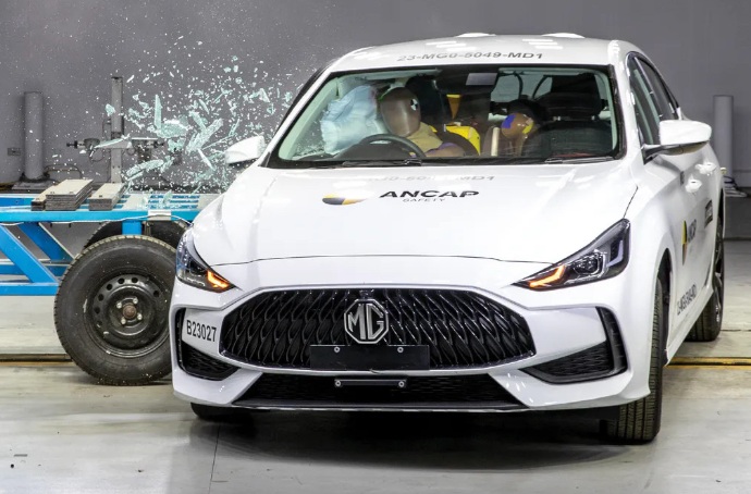 Đáng chú ý nhất là trường hợp của MG 5. Năm 2023, ANCAP từng chấm mẫu sedan này 0 sao an toàn đối với phiên bản bán tại Australia và New Zealand. Nguyên nhân chính đến từ việc thiếu hụt các trang bị bảo vệ cơ bản, trong đó nghiêm trọng nhất là không có bộ căng đai khẩn cấp cho cả hàng ghế trước và sau. Ngoài ra, hệ thống nhắc nhở thắt dây an toàn chỉ được trang bị cho hàng ghế trước, khiến hành khách phía sau không được giám sát đầy đủ về an toàn.