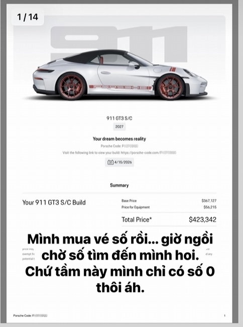 Theo bảng chi tiết cấu hình được chia sẻ, tổng giá trị của chiếc Porsche 911 GT3 S/C này đạt mức gần 425.000 USD (khoảng 11,18 tỷ VNĐ). Đáng chú ý, chủ nhân của xe đã chi tới hơn 56.000 USD (khoảng 1,48 tỷ VNĐ) chỉ riêng cho các trang bị tùy chọn thêm. Con số này cho thấy mức độ chịu chi và yêu cầu khắt khe về tính cá nhân hóa của khách hàng đối với dòng xe đặc biệt này, khi số tiền phụ phí đã ngang ngửa giá trị của một mẫu xe sedan hạng sang trên thị trường.