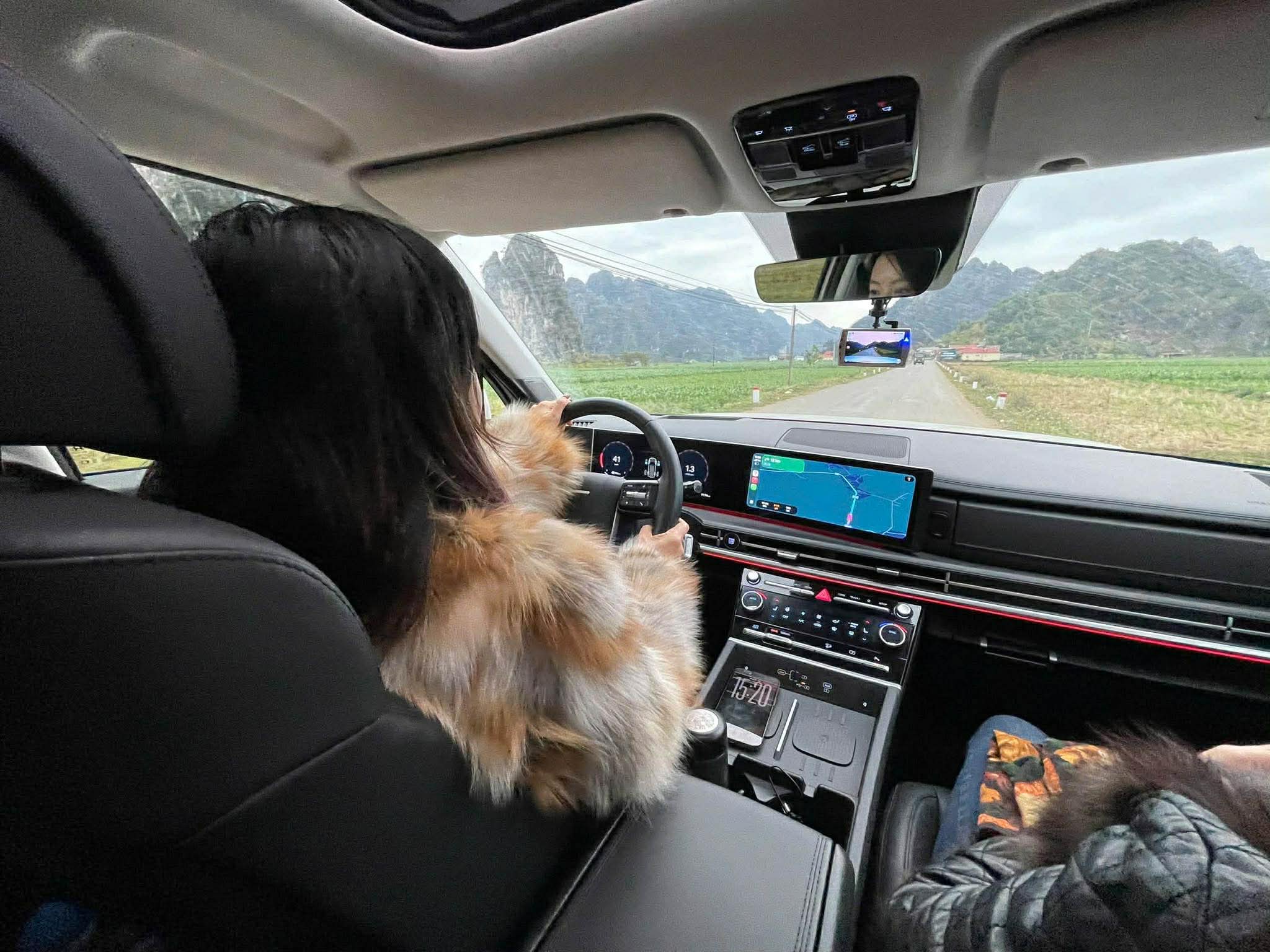 Khi tiến sâu vào các tuyến quốc lộ và đường tỉnh dẫn về Hữu Lũng, mặt đường bắt đầu hẹp hơn, nhiều xe ngược chiều và các khúc cua liên tục. Trong điều kiện này, Santa Fe Prestige vẫn giữ được sự linh hoạt cần thiết.