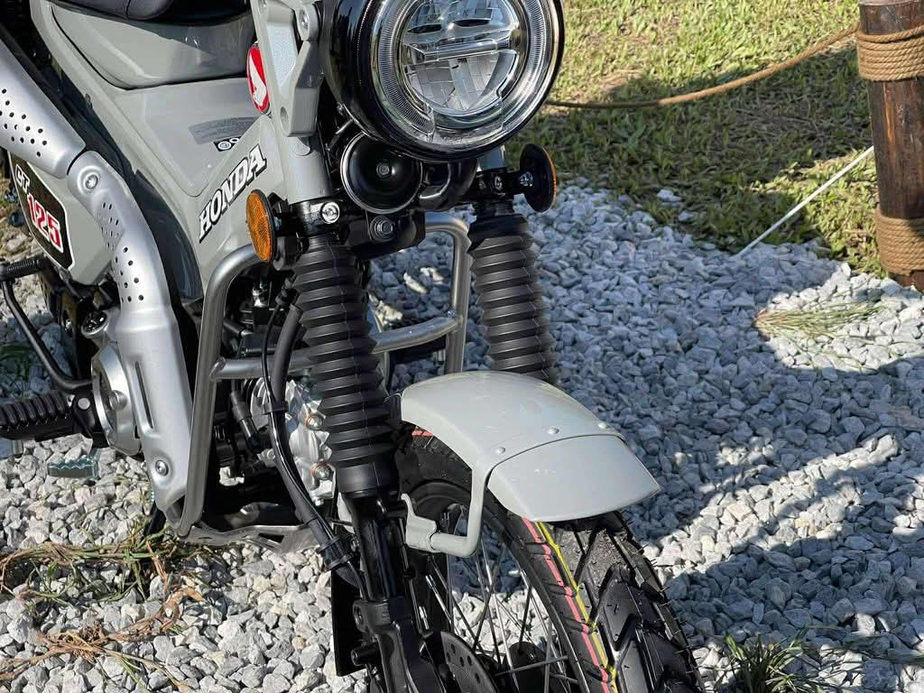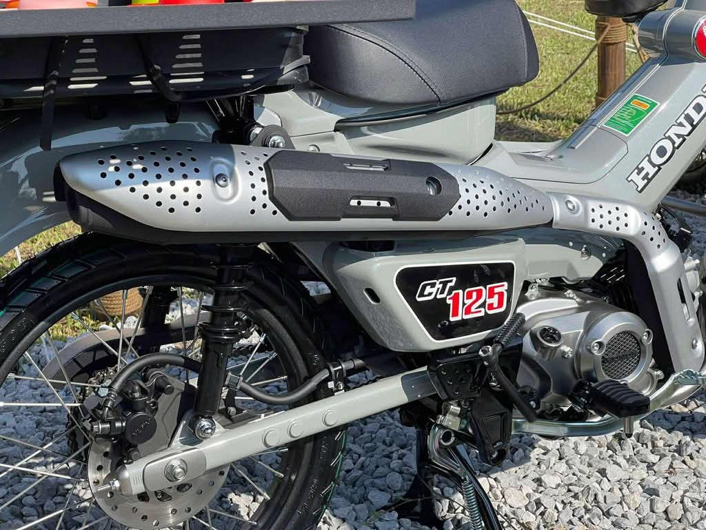 CT125 còn được trang bị khung bảo vệ gầm cứng cáp bao quanh động cơ, giúp hạn chế tối đa va đập từ đá, sỏi hay chướng ngại vật trên địa hình phức tạp, mang lại sự an tâm khi di chuyển qua đường mòn, suối cạn hoặc dốc đá. Kết hợp hoàn hảo cùng bộ lốp gai bám đường mạnh mẽ, CT125 thể hiện sức mạnh chinh phục vượt trội, sẵn sàng đồng hành cùng người lái trên mọi địa hình.