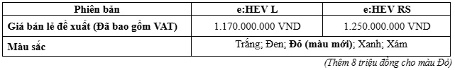 Ra mắt vào ngày 02/02/2026, Honda CR-V e:HEV mới được lắp ráp tại nhà máy Phú Thọ và chính thức bán tại thị trường Việt Nam từ ngày 11 tháng 02 năm 2026 qua hệ thống các Nhà Phân phối Ôtô Honda trên toàn quốc bao gồm các phiên bản cùng lựa chọn màu sắc và mức giá bán lẻ đề xuất như sau: