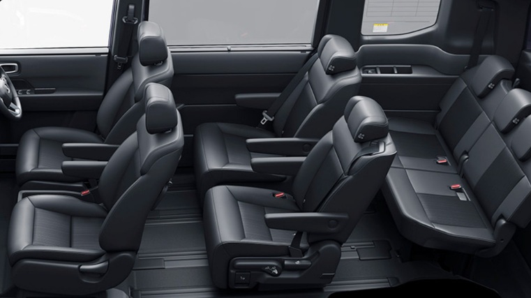 Khoang cabin của StepWGN được bố trí theo dạng 7 chỗ ngồi (2-2-3), trong đó hàng ghế giữa là hai ghế thương gia tách biệt, có bệ đỡ chân và khả năng trượt linh hoạt – tương tự phong cách của các mẫu minivan cao cấp. Hàng ghế thứ ba có thể gập phẳng hoàn toàn xuống sàn, mở rộng không gian chứa đồ khi cần thiết.