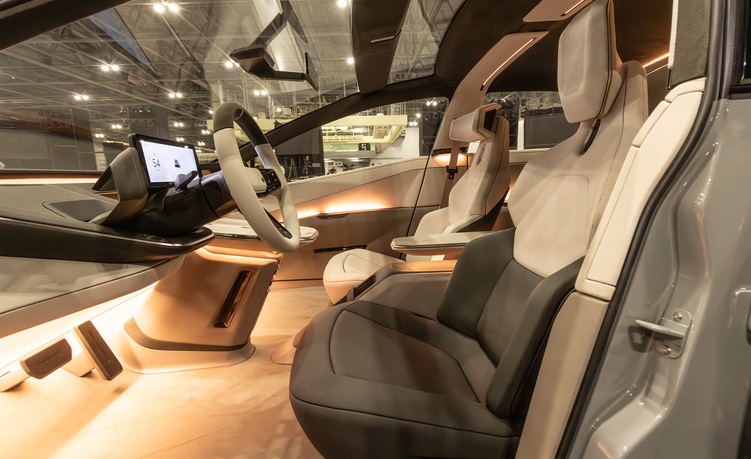 Xe có ghế ngồi kiểu thể thao với tựa đầu liền khối, bọc da nhân tạo tái chế. Các chi tiết trang trí dạng pixel ánh sáng và đèn viền nội thất LED giúp không gian trở nên sống động, hiện đại.