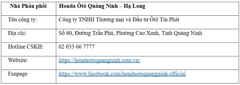 Với vị trí địa lý quan trọng trên địa bàn tỉnh Quảng Ninh – đóng vai trò quan trọng trong chiến lược kinh doanh ô tô của Honda Việt Nam, Honda Ôtô Quảng Ninh – Hạ Long sẽ mang lại cho người dân tỉnh Quảng Ninh cơ hội trải nghiệm các sản phẩm và dịch vụ chính hãng mang thương hiệu Honda.