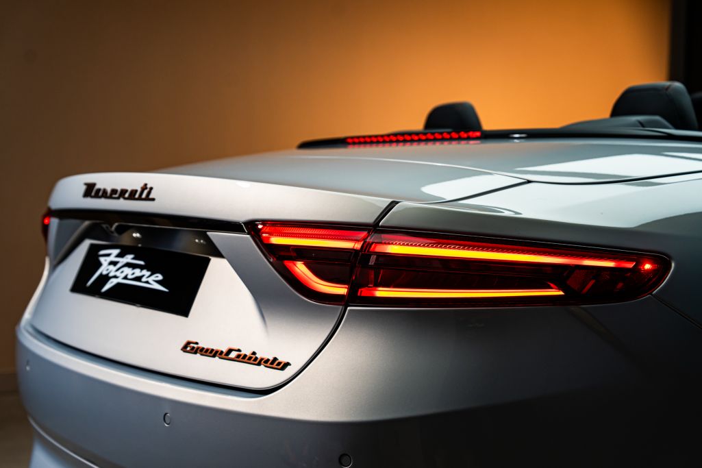 Di chuyển ra phía sau, Maserati GranCabrio Folgore có phần đuôi được làm khá tròn trịa, nuột nà khi loại bỏ đi ống xả bên dưới. Vị trí cắm sạc của mẫu xe thể thao mui trần này được bố trí bên dưới đèn hậu, thiết kế này khá hiếm trên thị trường.