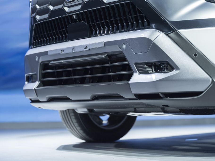 Đầu xe nổi bật với ngôn ngữ thiết kế đặc trưng Dynamic Shield và tạo hình theo phương ngang thanh thoát, đầy đặn, mang đến vẻ ngoài bề thế và uy lực. Lưới tản nhiệt thiết kế đa tầng họa tiết tổ ong được đặt dưới lớp acrylic trong suốt, tích hợp liền mạch với hai bên cản trước tạo nên hiệu ứng thị giác ấn tượng và diện mạo hiện đại. Cụm đèn LED hình chữ T đặc trưng vừa tạo điểm nhấn vừa tăng khả năng nhận diện cho xe.