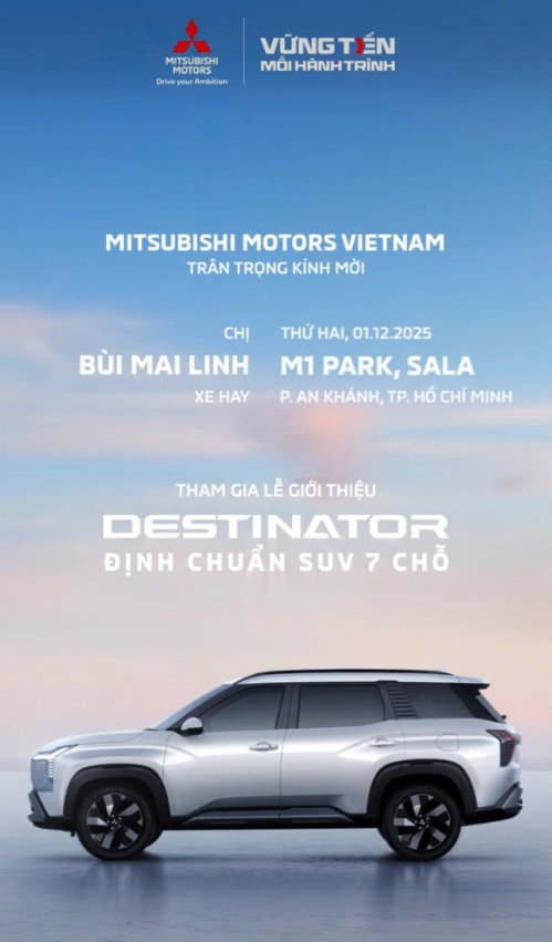 Mitsubishi Việt Nam vừa xác nhận sẽ ra mắt mẫu SUV 7 chỗ Destinator vào ngày 1/12 tại TP.HCM. Động thái này diễn ra ngay sau khi loạt xe thương mại được ghi nhận cập cảng từ giữa tháng 11, cho thấy mẫu xe đã sẵn sàng để phân phối.
