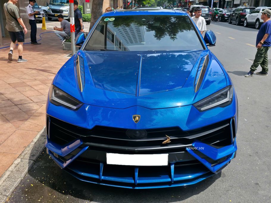 Thay vì giữ thiết kế nguyên bản của dòng SUV hiệu suất cao, chủ nhân chiếc Urus S tại TP.HCM đã quyết định "mạnh tay" đầu tư gói độ ngoại thất từ TopCar Design. Toàn bộ hệ thống cản trước và cản sau được thay thế bằng chất liệu sợi carbon siêu nhẹ, đi kèm với logo nhận diện đặc trưng của hãng độ xứ Bạch Dương.