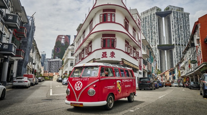 Truyền thống đó được tái hiện trên đường phố Singapore trong năm nay khi xe van ‘Renndienst’ di chuyển đến các địa điểm chọn lọc trên quốc đảo để trao tặng miễn phí các ấn phẩm Porsche ‘Raceborn’ phiên bản giới hạn tới công chúng.