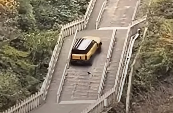 Tuy nhiên, màn trình diễn của Chery lại diễn ra theo kịch bản không như mong muốn. Theo đoạn video được ghi lại tại hiện trường, chiếc Fulwin X3L đang di chuyển lên dốc thì bất ngờ phát ra tiếng nổ lớn. Một bộ phận màu đen rơi khỏi gầm xe, khiến phương tiện mất lái, lệch sang phải rồi đứng khựng lại. Ngay sau đó, xe trượt lùi xuống bậc thang, cọ mạnh vào lan can và làm gãy một phần hàng rào bảo vệ, suýt rơi xuống khu vực sườn núi bên dưới.