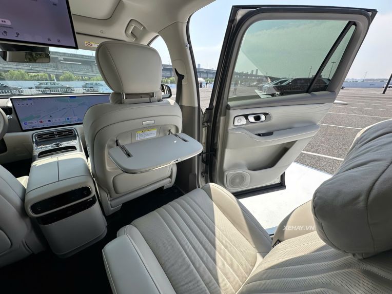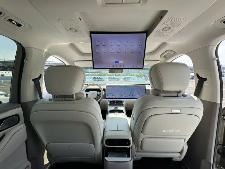 Hành khách phía sau cũng được phục vụ bởi màn hình giải trí gắn trần 17,3 inch độ phân giải 3K. Các tiện ích cao cấp khác bao gồm tủ lạnh mini 9,1 lít, bàn làm việc gập gọn và hệ thống âm thanh Flyme Sound với 27 loa, hứa hẹn mang lại trải nghiệm như một "phòng khách di động" thực thụ.