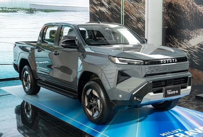 Tâm điểm của lần ra mắt lần này là Hilux Travo-e, phiên bản chạy điện hoàn toàn đầu tiên trong lịch sử dòng bán tải. Xe được trang bị hai mô-tơ điện, một ở cầu trước và một ở cầu sau, cho tổng công suất 196 mã lực và mô-men xoắn kết hợp 475 Nm.