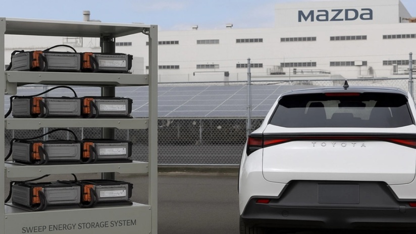 Hiện tại, nhà máy ở Hiroshima đang thử nghiệm hệ thống lưu trữ năng lượng mang tên Sweep, do Toyota phát triển. Công nghệ này tận dụng pin đã qua sử dụng từ xe hybrid và xe điện. Thay vì bị bỏ đi khi dung lượng suy giảm hoặc sau tai nạn, những bộ pin này sẽ được tái sử dụng như “bình chứa điện”, giúp nhà máy tích trữ và cung cấp lại năng lượng khi cần.