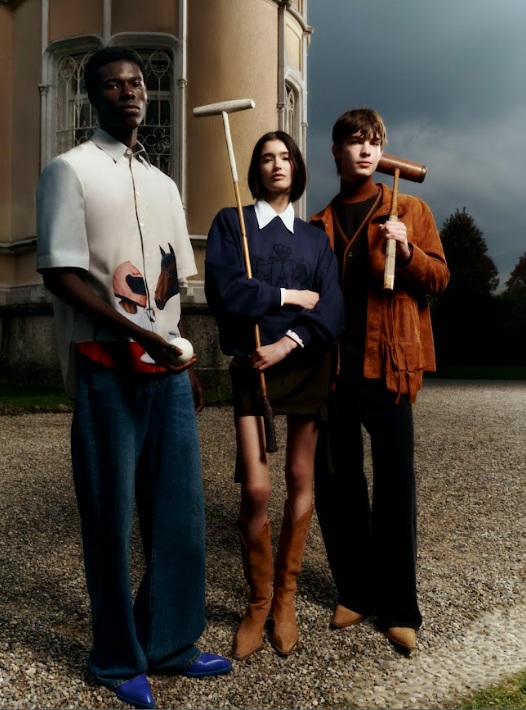 Sắc xanh navy được lựa chọn làm tông màu chủ đạo, biểu trưng cho vẻ đẹp thanh lịch vượt thời gian. Các thiết kế knitwear như áo len, áo gile và cardigan mang dấu ấn logo chữ V cùng những chi tiết lấy cảm hứng từ kỹ thuật khâu thủ công trong chế tác yên ngựa. Những đường nét mềm mại, phom dáng hiện đại và hoàn thiện tỉ mỉ tạo nên diện mạo mới cho áo hoodie và áo thun, trong khi áo sơ mi poplin mang đến điểm nhấn dí dỏm với hình ảnh một người đàn ông đội mũ bảo hiểm Vespa và một chú ngựa cùng thưởng thức espresso, một khoảnh khắc đầy chất Ý.