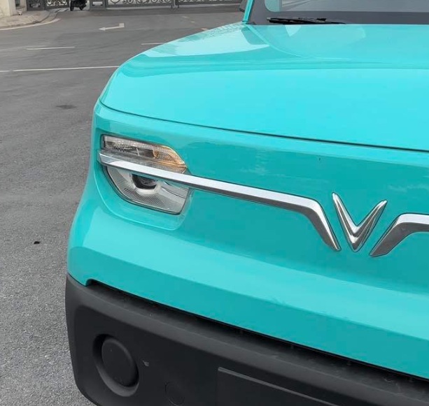 Xe sở hữu ngoại thất màu xanh quen thuộc của Xanh SM. Kiểu dáng bên ngoài gần như không thay đổi so với những hình ảnh chạy thử từng xuất hiện trước đây. Phần đầu xe nổi bật với thanh crôm tạo hình cánh chim ôm quanh logo “V”, vốn là nét nhận diện chung của nhiều mẫu VinFast. Hệ thống đèn phía trước vẫn sử dụng bóng halogen, trong khi gương chiếu hậu chỉnh cơ dạng cầu tương tự trên mẫu VF 3. Xe không được trang bị đèn sương mù nhưng cản trước có chừa vị trí để bổ sung khi cần.