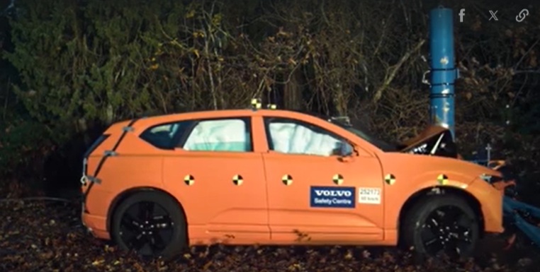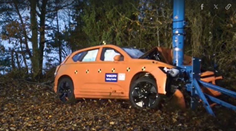 Volvo cho EX60 lao thẳng vào cột điện ở tốc độ 60 km/h để kiểm tra độ an toàn