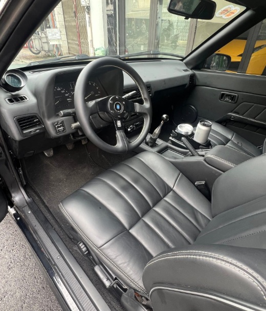 Khoang nội thất của Toyota Celica được làm mới với tông đen chủ đạo và đường chỉ trắng tương phản. Nguyên bản xe thường dùng ghế nỉ, nhưng nhiều khả năng đã được bọc lại da để tăng sự sang trọng. Bên cạnh đó, vô-lăng thể thao ba chấu Nardi và đồng hồ đo vòng tua gắn thêm trên cột A tạo dấu ấn của một chiếc xe JDM độ nhẹ.