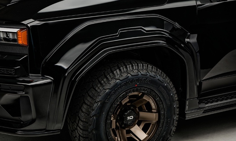 Phần đầu xe được thiết kế lại hoàn toàn với nắp ca-pô tích hợp khe gió cỡ lớn, cản trước kiểu thể thao và lưới tản nhiệt tinh chỉnh mang hơi hướng hiện đại. Hai bên thân, bộ ốp vòm bánh mở rộng cùng bậc lên xuống kiểu off-road dày bản giúp tổng thể xe trở nên vững chãi và bề thế hơn.