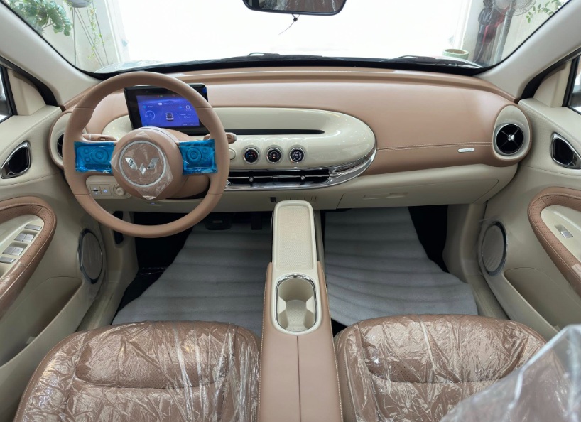 Ở lần nâng cấp này, Wuling đã thực hiện khá nhiều tinh chỉnh bên trong xe. Trên phiên bản tiêu chuẩn, ghế lái chỉnh điện và cặp màn hình kép 10,25 inch quen thuộc đã bị lược bỏ, thay thế bằng ghế chỉnh cơ và màn hình đơn 7 inch sau vô-lăng. Bù lại, hãng bổ sung tính năng đèn chiếu sáng tự động, bệ tỳ tay mới và thay đổi vị trí cần số sang dạng gạt sau vô-lăng. Đối với hai phiên bản cao cấp hơn là Plus và Max, ngoài những thay đổi tương tự bản tiêu chuẩn, xe sẽ được trang bị thêm hệ thống camera 360 độ để hỗ trợ quan sát.