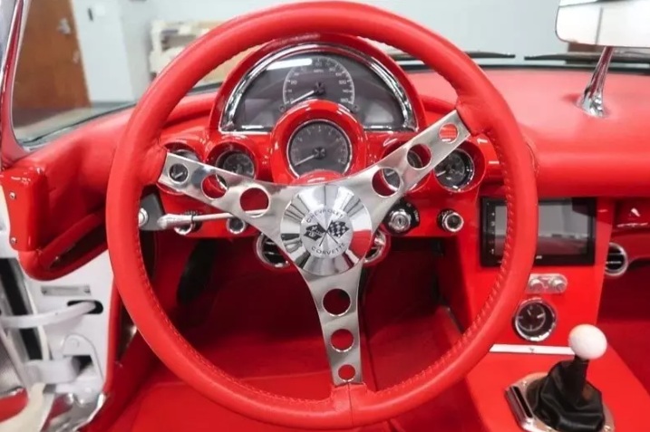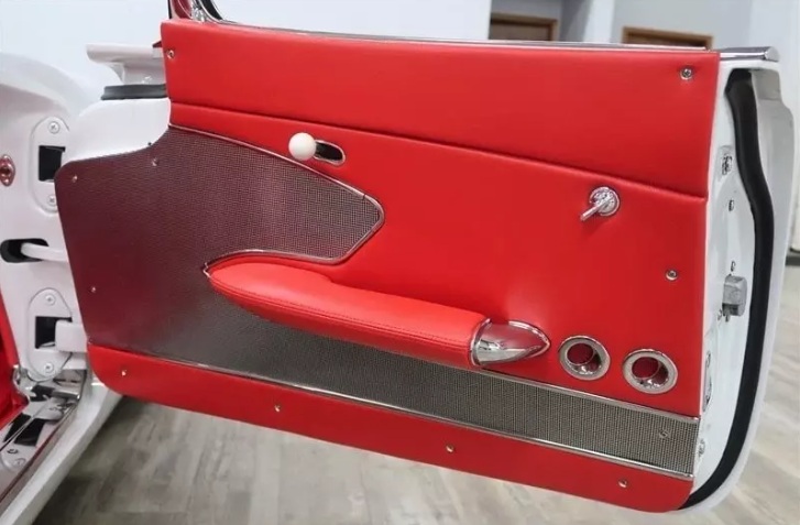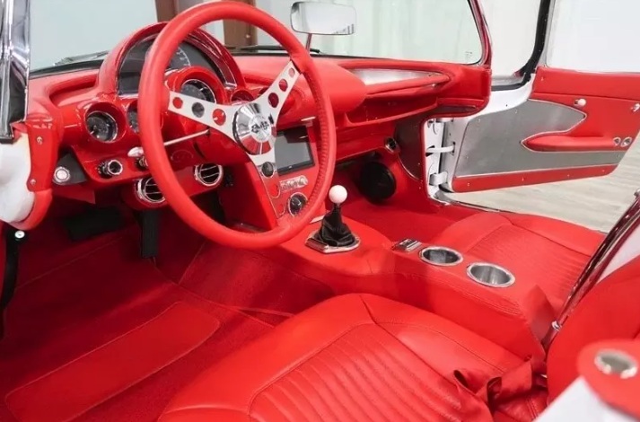 Khoang lái của chiếc Chevrolet Corvette 1958 này cũng được cá nhân hóa toàn diện, kết hợp chất liệu cổ điển với công nghệ hiện đại. Xe được bọc da toàn bộ, trang bị ghế chỉnh điện có thể ngả, hệ thống điều hòa Vintage Air, đồng hồ kỹ thuật số Dakota Digital, âm thanh Bluetooth với ampli Memphis và thậm chí có cả nắp capo điện.
